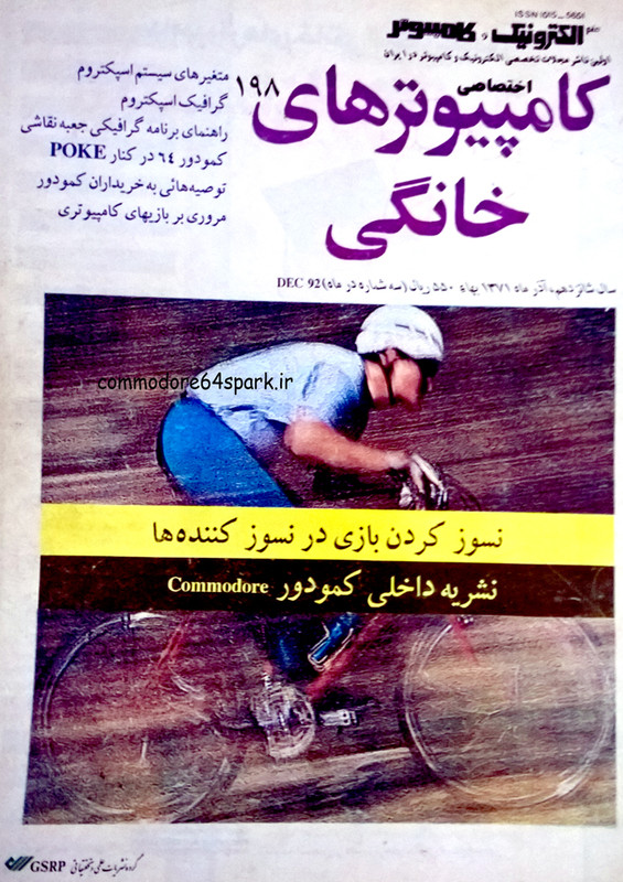 روی جلد مجله عکس دوچرخه سوار سرعت در پیست را نشان میداد که بطرز خیلی ابتدایی روی آن کار شده بود و به آن رنگ و بویی کامپیوتری داده بودند !! (یادمان باشد که در آن تاریخ فوتوشاپی وجود نداشت )